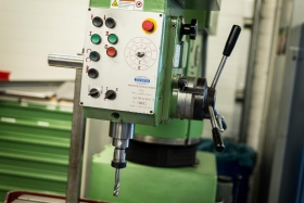 Bohren und Gewindeschneiden bis 30mm bzw. M30, Schnellradiale „DONAU DR40“, Bohrmaschine „Alzmetall AB3“, Gewindeschneidarm, Bolzeneinzuggerät, Konventionelle Drehmaschine.